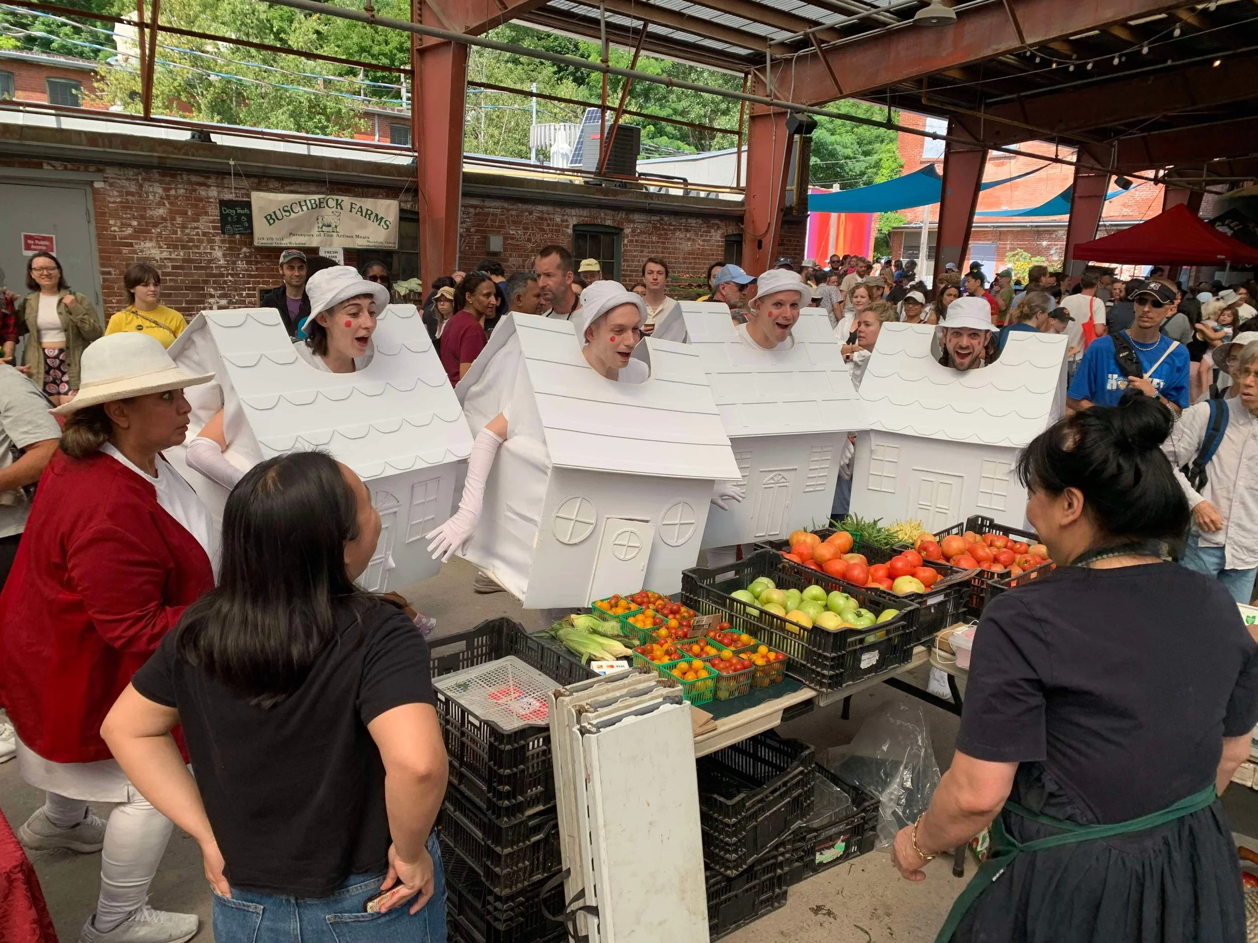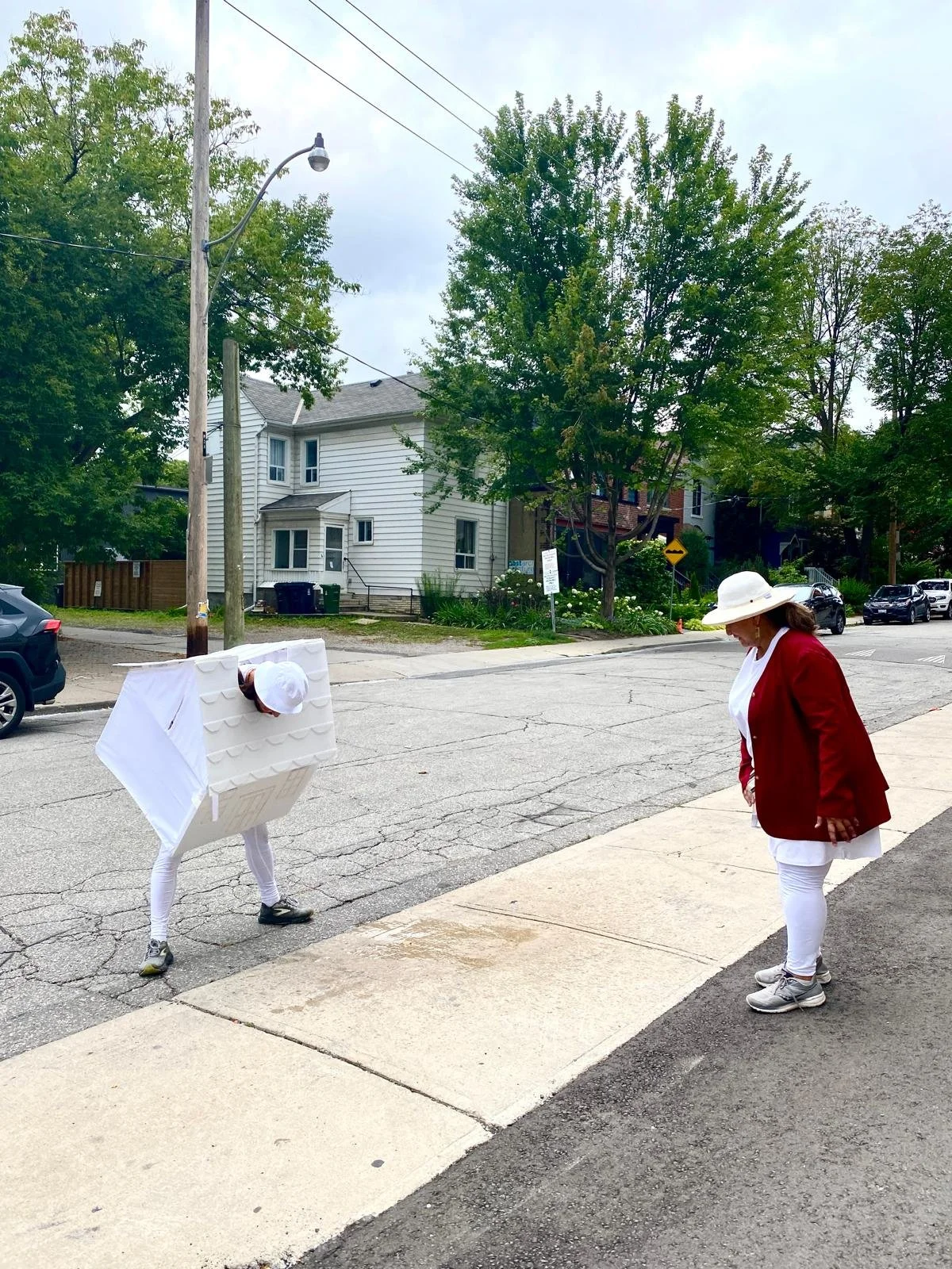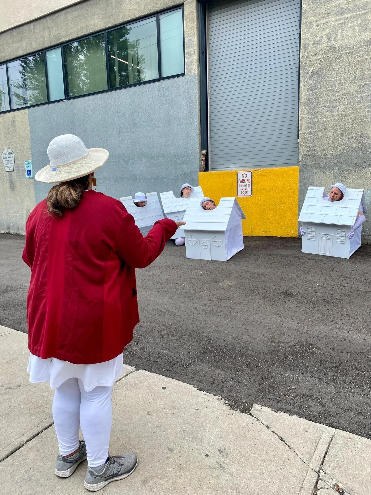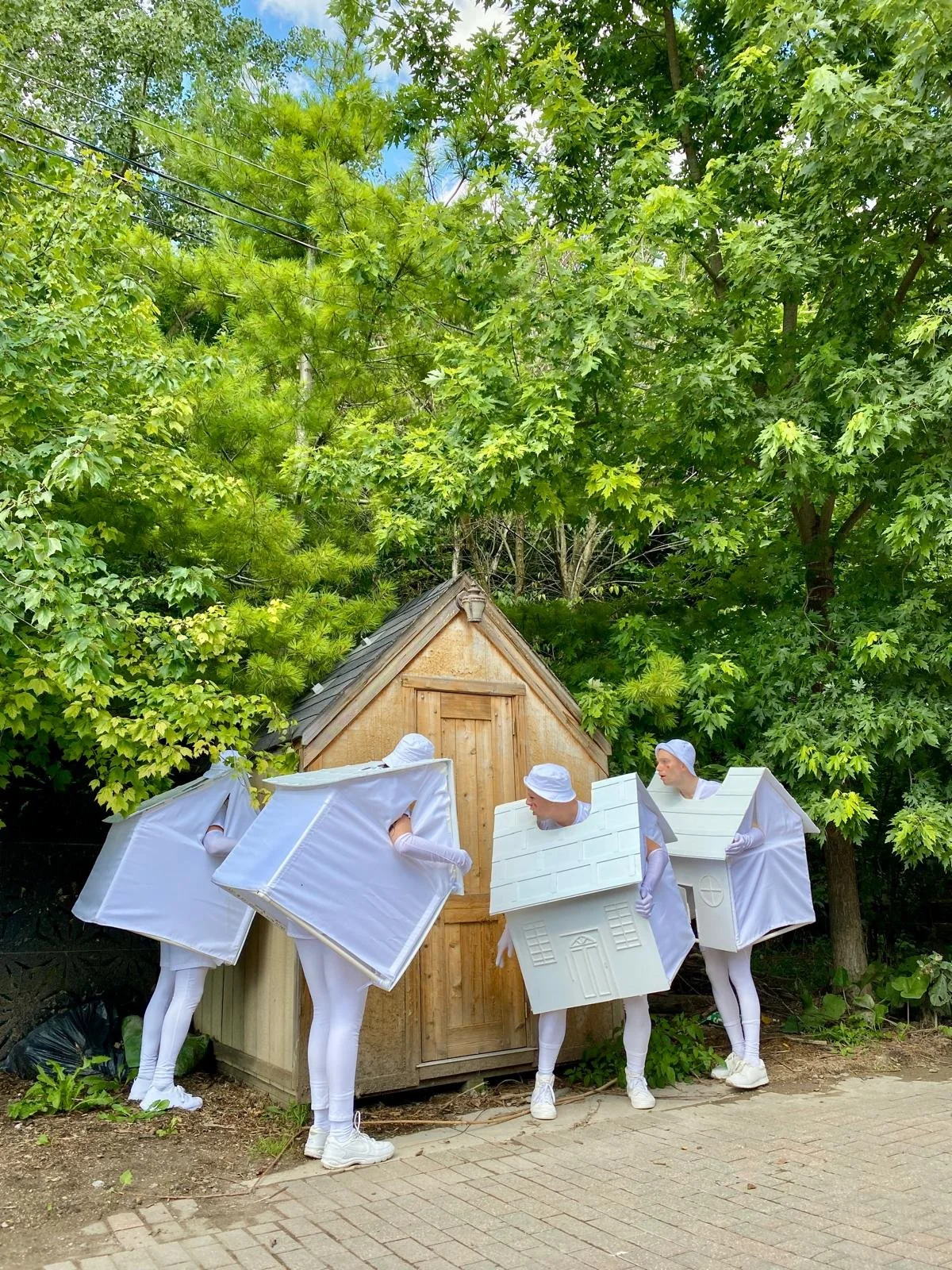 Homebuddies: the hottest new trend in micro-living! Promenade theatre, wearable puppetry, and mini-games combine in this absurdist roving show where audiences can compete to buy a Homebuddy in this harrowing new housing market. This roving collection of anthropomorphic houses are freshly built and eager to find their new owners with the help of their Property Manager. Will you help them find the perfect buyers and expropriate the perfect place to start a neighbourhood? All they need is some untapped property value, ripe for the taking!